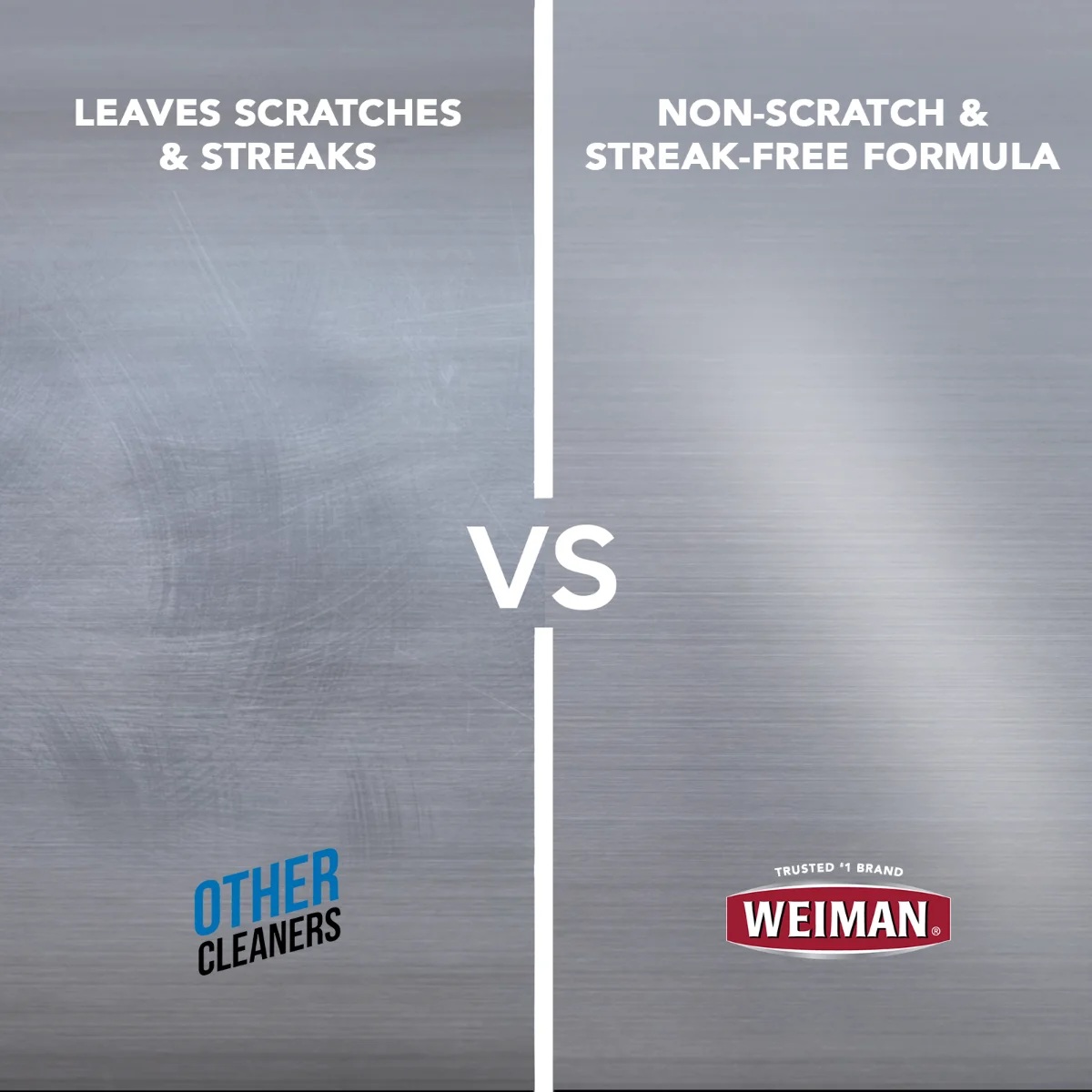 Not recommended for use on stainless steel appliances. For stainless steel appliances, use Weiman Stainless Steel Cleaner & Polish or Stainless Steel Wipes