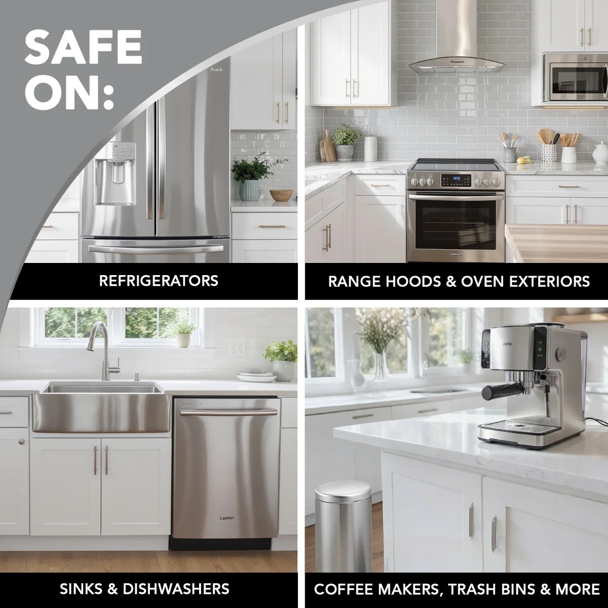 • PERFECT FOR: stainless steel kitchen appliances including refrigerators, dishwashers, microwaves, coffee machines, sinks, range hoods, backsplashes, countertops, trash cans and grill exteriors