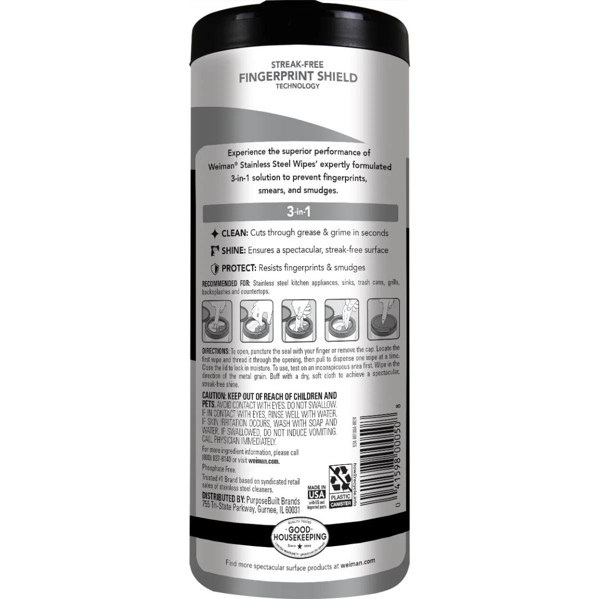 Give your stainless steel appliances the treatment they deserve with Weiman Stainless Steel Wipes. This 3-in-1 solution cleans, shines and protects to prevent and repel fingerprints, smears and smudges, keeping your stainless steel surfaces looking spectacular.